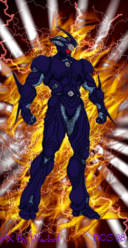 Present estimates of this Guyver type abilities have been compiled and summarized below. -Strength: Subject has the estimated strength of around 1700 men, but can focus both his internal and any external energies to double his strength to a maximum of 3400 men. Stamina of subject nears that of a Warrior Guyver due to the apparently limitless power of the subjects W'Kar element, though this is limited in his present stage of development and relies mainly on his immense bio-energy reserves, and his ability to draw energy from his environment. -Speed: Subject has shown the ability to reach speeds approaching 3,300 MPH on land and up to 20,000 MPH in flight. Although in an unobtrusive environment, such as space, W'Kar can max half the speed of light. Reflex speed has been estimated to be well over 500 times normal, with an approximate max of 1000 times normal. -Durability: The subjects bio-armor is incredibly resistant to damage and can withstand a normal Guyvers Mega Smasher with little to no damage. Rate of regeneration is near 100 times normal for a Guyver and can adapt to biological attacks as quickly as a Warrior Guyver. Shielded max can block anything short of something 30 times the power of a normal Guyvers Mega Smasher attack and with extra energy provided by the attack, due to subjects energy absorption ability, can block an additional 15% to 20% his normal max. -Hypersenses: Subject is believed to have a full range of sensory enhancements and can perform a detailed scan of an area of approximately 1 mile. Subject can also scan another units built up bio energy level, showing units approximate power and strength, and can also scan areas of Hyperspace for certain signatures. -Infrared Head Beam Orb: Approximately 12 times the power of a normal Guyvers. Weapon shows improved range, accuracy and overall function. -Pressure Cannon: Comparible in power to a Guyvers Mega Smasher. This weapon is very large when fired (approximately 3 feet in diameter) and the subject has shown the ability to mentally control the trajectory of the gravity ball after firing. Weapon can track targets, split into multiple pressure cannons and other uses. The Pressure Cannon can be fired nonstop, at a rate slightly faster than a Zoalords Gravity Bullet attack, although this drains him and forces W'Kar to immediately recharge his energy reserves. -Sonic Emitters: 4 times stronger than a normal Guyvers. Weapon is more versatile than average sonic emitters and can be used to create the Sonic Cocoon the Jy-taki, Creator warriors that serve in the same basic capacity as the Kavzar serve in this universe, have originally been known to use, but is primarily used defensively however. -Plasma Swords: Vibrational swords infused with Plasma energy. This allows them to easily cut through any vibrational sword equal to or lower than a Gigantic Guyvers. -Mega Smashers: Essentially the same as a normal Guyvers but with 20 times the power. Though originally very draining and damaging to hosts body when used, the subject has overtime lost this defect. Weapon can now fire for as long as W'Kar can keep his energy level up. -Energy Draining: The most versatile and powerful of W'Kars attacks. By draining surrounding energy of any type or form, W'Kar can create weapons up to 50 times the power of a Guyvers Mega Smasher. Versatility of this ability is amazing in the fact that virtually any form of energy based weapon can be made. Including, but not limited to, Energy Balls, Plasma Blasts, Bio Energy Bladed weapons, Time and Proximity bombs, and standard energy blasts. Since energy for this weapon is supplied by outside supplies, such as any biological organism or even electrical systems, its true potential has yet to be discovered. -Control Medal: Subjects Control Medal is separated into three main parts. The Bio Control System, which controls and regulates the power distributed by the subjects Energy Draining system and/or by the W'Kar Element. The Energy Draining System, which powers most of the units functions. By draining surrounding energy of any type into subject, as well as creating weapons from that energy, and the W'Kar Element (see below). The Bio Control System also copies the hosts mind into the medal so even in Self Defense mode the host can be in control. If the Bio Control System is damaged, the medal activates the backup Friend or Foe mechanism, which uses the host previous memories to attack only aggressors. -Cloaking: The unit can make the armor appear as anything. So it can give a chameleon effect, or keep the armor on and appear as clothing. -Warrior Rage: Warrior Rage is the most powerful of W'Kars abilities. Although it can't be controlled in the subjects present stage of development, the Warrior Rage gives W'Kar a 3X boost for as long as necessary to complete his task. Shown only when W'Kar is in an extremely angry state, this is due to the unit feeding off his emotions to increase its Bio Energy Reserves and further evolve itself. -W'Kar Element: Created only when a life sustaining planet, like Earth, forms. A protomatter like metallic organic Element with multi-dimensional properties, has the potential to take a living beings power and boost it over 100 times. When this was merged with the original W'Kar Unit, it did just that. Originally merged with a Creator, it created a being with 50 times the power of a normal human Guyver. Since the unit was designed to completely merge with the host to produce an entirely new lifeform of extreme power. The removal of the W'Kar unit resulted in damage that forced it to revert to a dormant state similar to a normal Guyver unit. Now merged with a human host, the unit is slowly repairing itself and slowly evolving itself and the host into a new and extremely powerful lifeform. The ultimate potential of which has yet to be discovered. -Hyperspace Orb: The subject has an orb that grants it an ability similar to this universes Warrior Unit in that it can send the host into Hy