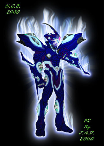 Present estimates of New Guyver type abilities have been compiled and summarized below. -Physical strength ranges from a normal level approximate to 2,500 men to a power boosted max of approximately 4,000 men. Stamina is unlimited unless power boost is used for longer than 15 minutes at a time. This results in a critical strain upon unit that causes the Gigantic armor to automatically deactivate and for the host unit to revert to its pre-Matrix form and power level. This condition can last several minutes before subject regains his full power and can again activate the Gigantic armor to become Dreadnought. -Speed: Running = 0-7,500 MPH, up to 15,000 MPH when power boosted. Flying = 0-75,000 MPH normally but use of power boost and units back thrusters allow for a top speed of up to 375,000 MPH. Reflex speed is 1,000 to 4,000 times normal and up to 10,000 times normal when power boosted. In space, the subject can use his quantum powers to travel at the speed of light and/or use power from his gravity shield to allow him to travel at faster than light speeds for either a short burst of up to 10,000 times the speed of light or a prolonged burst at only a few multiples of light speed, though this later ability is rarely used since the subject usually just teleports any great distances. The subject can also create wormholes and use other methods of FTL travel such as quantum slipstream. -Quantum Speed: Ability the subject has developed that allows him to instantly move from one location to another at will and without traveling through an intermediate medium such as hyper space. Since no measureable amount of time passes when this ability is used, subject can appear to be in two or more places at once. -Quantum Time: A state the subject has reported he can go into when using his Quantum Speed ability, allowing him to exist within a single instant of time. Though unable to effect anything in this state, as he passes through normal matter like a ghost and is unable to affect anything with his powers, he can use this ability to analyze a situation and combine this ability with his quantum computing power, to allow him to be absolutely certain of his choice of action upon re-entering normal time. He can also use this ability to simply meditate and think of things without worry of the passage of time. -Teleportion: Subject has the standard ability to perform hyper space jumps that both the Warrior and Gigantic class Guyvers possess, but, since merging with the Matrix, the subject can now utilize all known forms of teleportation. Including quantum, trans dimensional, worm hole, and psionic methods. -Quantum Inverse Teleportation: An ability the subject first demonstrated on a Grakken mothership when he used this ability to trans locate the ship with an equally massive Creator ship. Essentially allowing subject to teleport objects more massive than he can normally teleport, by switching them with an object of near equal mass. The subject can also use this ability tactically, to switch places with either an opponent or ally at will. -Molecular Manipulation: A mostly psionic based ability that allows subject to manipulate matter at will. This allows subject to both move an object and/or alter it, such as turning lead into gold or changing the shape of an object. The full range of this power has yet to be demonstrated. -Quantum phasing: An ability the subject has developed that allows him to move through solid objects like a ghost or make himself as impervious and as unmoveable as a 200 ton diamond. The subject can also use this ability to travel to parallel universes by changing his quantum frequency to match that of one of the parallel universes. -Subjects Power Punch attack is similar to a standard Gigantic Guyvers but maximum rate of acceleration is equal to 200 G's, 400 G's when power boosted, and delivers a blow approximately equal to a 3 to 5 kiloton explosion, per punch and can deliver up to two at a time. The subject can also use his power wave attack to more than double the power of this attack. -Durability: Subject can withstand a 3 to 5 kiloton explosion with nothing more than his armor and basic body shielding. Even if damaged the subject can regenerate 400 to 1,000 times faster than a normal Guyver and automatically adapts to new threats, making it increasing more difficult to damage subject during battle. The activation of the subjects shields increases durability to a level that allows subject to withstand anything up to a 25 kiloton explosion. The subject can also focus all his shields in one direction and combine it with subjects ability to power boost to allow him to withstand anything up to a 60 kiloton explosion. Use of the subjects gravity shield can rapidly boost this level and can, given time, raise subjects maximum shielding to withstand a multi-megaton level nuclear explosion. Subject can also generate a Quantum Matrix shield/field, a multi-dimensional/spacial quantum energy flux field, that renders subject virtually impervious to attack. Subject can withstand anything up to a ten Gigaton explosion with this ability, but requires several seconds for field to be established and the only weapon the subject can use in that state is the Matrix bomb, a weapon too powerful to be used under any normal circumstances, so is rarely used in full combat situations. -Gravity shield weapon: Subject possesses the ability to use his blast field to channel and store gravitational energy from both himself and any external source. A weapon of incredible destructive potential, it is what ultimately allowed the Warrior Guyver to defeat the first Guyver Zoalord. The subject can call upon this powerful weapon at will for either defense or offense. Allowing the Warrior Guyver to either withstand or administer a nuclear scale attack. The subject can also use this shield to absorb power from gravitational attack(s) made upon him. Now merged with the Matrix, the subject can use this power to warp the very