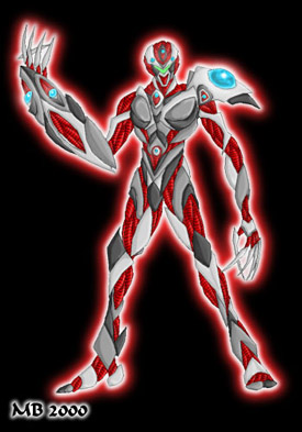 Present estimates of subjects abilities have been compiled and summarized below. -Physical strength was hard to gauge as subject kept on getting stronger the longer it fought but was easily stronger than a standard Warrior Guyver when it first confronted ACTF forces and finally peaked at the equivalent of 1500 men before it was finally terminated. Stamina was unlimited due to the mysterious Creator crystal that continuously produced energy, in a process not fully understood but analysis indicates the crystal was composed of a material that defies the natural physical laws of our universe and may mean the crystal originated from another dimension or was composed of a form of matter our science has yet to even theorize about. -Speed: Subject was exceptionally fast and agile, having easily out maneuvered all but coordinated attacks by the Canadian ACTF Guyver team that first encountered the being. Making the being at least twice as fast as a standard Warrior Class Guyver when first encountered and nearly 5 times faster when finally terminated. It is unknown whether the subject had the abilities to teleport but may have gained the ability if it had not been defeated. -Sensory perception of this being was quite extensive and may have included the entire electromagnetic spectrum. Allowing subject to perceive its environment in great detail and observe targets at ranges up to several miles with pin point accuracy. Hyperspectral vision may even have allowed the creature to observe objects otherwise invisible, such as a cloaked opponent. -Durability, like its physical strength, kept on increasing the longer it fought. Granting subject the ability to withstand extreme levels of damage, resulting in its complete regeneration if any small part of it was left after an attack, ultimately requiring the combined firepower of Ultimus and Promethius to finally destroy this being. Even its base level was durable enough that it required Warrior Guyver level weaponry to even damage this being. -Subject was heavily armed with laser weaponry, hidden within openable compartments within its right arm and chest plates, along with the few crystals visible on its body. These weapons have been rated to have 10 to 50 times the power of a normal Guyvers head beam, each. The lasers within the chest plates operated in a similar manner to Guyver Mega Smashers and had roughly the same level of destructive power. -Ultimate Attack: Presumed to be a byproduct of the mysterious alien crystal that powered this being, the subjects anti-proton cannon more than rivaled the power of a Warrior Guyvers Mega Smashers. Like the rest of subjects abilities, this weapon steadily grew in power until subjects termination. The maximum recorded power level for this weapon was equal to the power of a 1 Megaton nuclear bomb, due mainly to the anti-matter affect the blast had on its target. -Shadow Self: A psionic ability