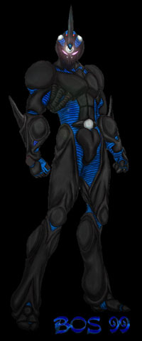 Present estimates of this unit type abilities have been compiled and summarized below. -Normal Strength is about twice that of a normal Guyver, with slightly above normal stamina, but activation of the power sword increases strength to four time a normal Guyvers, nearly rivaling the Warrior Guyvers 400 men rating, and stamina becomes unlimited due to HSL provided by the power sword. -Subjects normal Speed range is: Running=0-384 MPH / Flying=0-600 MPH, and use of power sword increases subject speed to: Running=0-600 MPH / Flying=0-3750 MPH -Durability of Unit is about the same as a normal Unit but has been equiped with a cloaking, time dilation phasing, field that allows unit to move more quickly than normal and puts it slightly out of phase with normal time and renders unit invulnerable to most attacks except for energy fields that affect space/ time such as a Zoalords or Guyvers gravity attacks. Use of the power sword adds a Warrior Guyver type body shield and the ability to project a Gigantic Guyver type force field, making subject invulnerable to all but the most powerful of attacks. -Subjects vibrational elbow swords are same as a standard Guyvers except they can be swept forward for extra reach and stabbing attacks. When using power swords, subjects vibrational swords are locked into normal elbow position and are slightly enhanced due to power boost from power sword HSL. -The units Mega Smashers are standard for a Guyver, but use of temporal phasing ability allows blast to partially penetrate energy shields, and use of power sword boosts power level to that of a Gigantic Guyvers Hyper Smashers but fire duration remains the same and cannot be maintained for a full ten seconds like the Warrior Guyvers Mega Smashers. -The head beam infrared laser Orb is twice as powerful as a standard Guyvers. Combined with Units more advance targeting system, allows subject to accurately hit targets up to a hundred miles away. The power boost from activation of power sword raises this weapons power to 10x a normal Guyvers and rivals the Warrior Guyvers. -The Unit possesses more advance sensory enhancements than a standard Guyver and is rivaled only by the Warrior Guyvers. This allows unit to accurately track single or multiple targets and avoid most detection methods. -The units Gravity orb has been enhanced to allow subject to create a time dilating phasing field that puts subject out of phase with normal time space (visually this creates a blurring and after images of subject) and renders subject undetectable to all but the most advance sensory systems, allowing subject to move almost like a ghost and an average of four times his normal speed due to the time differential caused by the field. Though use of this enhancement normally puts a strain on host, use of the power sword allows subject to use this ability indefinitely as well as enhance its otherwise standard gravitational powers to the level of a Warrior Guyvers. -The units sonic weapon emitters appear the same as a standard Units but can be tuned to affect the metabolic functions of a single living being, allowing unit to selectively assassinate a given target without leaving obvious signs of attack. This also allows Unit to kill subjects normally resistant to Guyver sonic attacks by focusing all its power to a single vital organ. Use of the power sword increases the power of this weapon by a factor of four. -The units Control Medal is of standard design but has an improved host interface, providing host with more advance sensory enhancements and improved control over Units weaponry. Activation of the power sword adds an additional thin ring to the Control Medal and allows subject to control the power of the power sword whether subject is in physical contact with the sword or from a distance. The actual range that the subject can maintain control over the sword is unknown. -Additionally it has been discovered that the unit has several special attacks that can instantly kill most opponents in either battle or in its originally designed capacity as a ninja like assassin unit. These special attacks include the ability to use his cloak/phase power to phase parts of himself through a target and thus fatally disrupt his targets molecular and cellular structure, another is the ability to focus his gravitational power to magnify the power of his punch, unit can also focus his mega smashers into almost laser like energy attack that allows him to accurately hit a single taget, even if that target is miles away. -Subject can also extend his cloak/phasing field to another subject temperarily and can use this to either protect or kill by releasing the subject from the field while still phasing through a solid object. Additional analysis also suggest subject may also be able to temperarily increase the power of his cloak/phasing field so he can increase his speed by around ten times his norm but would deplete all his energy reserves unless power boosted by the power swords HSL. -Analysis of the Creator made Power Sword, indicate it is a recent creation of the Creators and has two distinct parts. One part seems to have bonded onto the host Unit, in a similar manor as a Gigantic unit, and provides host unit with a HSL as well as complete control over the power sword itself. The second part is the power sword which appears to be combination of a Warrior Guyvers polymorphic vibrational sword and an Aceaer type plasma sword. The sword also can be used to channel the power of host unit and HSL for either attack or defence. Known attacks include zoalord like energy cyblade, and an energy attack similar to the Warrior Guyver 2 cyclone blast. The sword can also change shape like the Warrior Guyver swords and split into two seperate swords. Known defences include the ability to project a directional energy shield that combines and boosts subjects normal pressure cannon shield, and the ability to simultaneously or seperately generate a weaker but still powerful omni