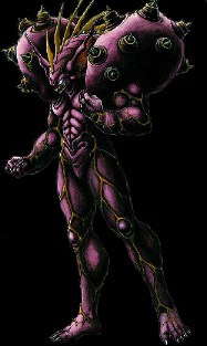Present estimates of New Zoanoid type abilities have been compiled and summarized below. -Bio Missles: Gaster has 18 Bio-Missiles that can be fired either one at a time, several at a time, or all at once. Each missile is telepathically linked to Gaster, giving the zoanoid complete control over them in mid flight. One missile has enough explosive force to blow apart a Guyvers vibrational sword and together all 18 could destroy a Guyver. Though a powerful and accurate weapon, the limited number of missiles combined with relatively short flight range of only 100 meters (~328 Feet), makes this primarily a tactical weapon. -Liquid Explosive Dischargers: A close to mid range combat weapon. The liquid dischargers, one located on each forearm, fire two different liquids that when combined form a powerful explosive as volatile as nitroglycerine but with significantly greater explosive power. The power of this weapon has been noted to be powerful enough to crack even a Zektoles armor but the weapon is difficult to use as the launchers have a limited range and damage to the shoulder liquid storage sacks could allow the Gasters entire supply of the two liquids to mix and self detonate, killing this type instantly. -This type was not made to be as fast as the Thancrus type, so only has a top ground speed of 60 MPH, but reflex speed is nearly equal the standard Guyvers 40x max., allowing this type to use its explosive liquid launchers with great speed and accuracy. -Physical Strength is approximate to 30 men. -Recent advances in Chronos