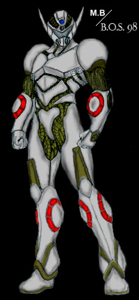 Present estimates of Battle Armour type abilities have been compiled and summarized below. -Physical strength has varied according to units power levels but has been noted to average that of about 50 men, which makes armour about three times stronger than US Blue Battle Armour type. -Stamina is limited to wearers but armours own limits have been enhanced by the addition of a dimensional coupler, a device similar to the Warrior Guyvers HSL power system, and allows wearer to use all of the armours abilities indefinitely short of needs such as repair and maintenance as armour possesses no regenerative abilities. -Units Durability, despite units small size and armour thickness, is only slightly superior to Blue Armour type but can be augmented by an energy shield projection ability that temporarily renders unit invulnerable to conventional weapons short of anything equivalent to a half powered mega smasher and is suspected of being derived from Creator technology that the US forces had recently acquired. -Unit possesses a wide range of sensory enhancements that are channeled through a H.U.D. system and through units cybernetic interface to provide users an extensive flow of data about changing battle conditions and has a range of up to 5 miles depending on detail requirements and sensory enhancement being used. -Unit cybernetic interface gives wearer slightly superior reflex speed and allows the average user to run up to 60 MPH (~97 KMH) for short bursts and with the assistance of thrusters put in strategic parts of armour that allow user to fly at speeds up to 300 MPH (~483 KMH) for several minutes at a time, unless augmented by an optional jet back pack for extended flights. -The units primary weapon is a system of high powered laser projectors that allows user to fire a barrage of laser fire in virtually any direction at will and each has exhibited a power level about equal to a Guyver head beam laser. The user also has the option to focus laser power through elbows to form laser swords with approximate cutting power of a Guyvers Vibrational sword and has been augmented by units new shielding ability so swords can be used to block as well as attack. -Unit does not possess the ability to produce a pressure cannon but can focus shield energy to produce a ball of plasma with equivalent range as a pressure cannon but with only 80% the destructive power. -Unconfirmed reports also indicates that unit can focus total laser power through chest plates in a similar manor to a Guyver using a mega smasher to produce a pulse laser beam blast with nearly the destructive power of a Guyvers single mega smasher. There is also an indication that a Gigantic armour upgrade has been developed for the Robo Guyver armour and nearly doubles all of the armours abilities and power. |