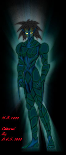 Present estimates of subjects abilities have been compiled and summarized below. -Physical strength in human form is that of 60 men and goes up to 150 men in battle form. Stamina is very high due to subjects extensive bio-energy reserves and can fight extensively for several hours unless she uses some of her more powerful bio-energy attacks. -Speed is the subjects primary weapon, having been programmed with the instinctive mastery of all known forms of hand to hand combat. She has a Reflex speed of 10 - 40 times normal in human form and up to 100 times normal in battle form. Ground speed is 0-250 MPH in human form and up to 600 MPH in battle form. Flight speed is 0-100 MPH in human form and up to 300 MPH in battle form. -Durability: Subject can withstand anything a normal zoanoid can withstand in its battle form and three times as much in her battle form, despite its smaller and more humanoid form, but she can also generate a powerful bio-energy shield. In her human form she can only project a directional shield to block anything up to a Guyver pressure cannon. In battle form, the shield can be projected as an omni directional bubble shield to protect her from multiple pressure cannon power level attacks or can concentrate all her shield power in one direction to block anything up to a normal Guyvers single Mega Smash. Her rate of regeneration is 100 times that of a Guyver, allowing her to nearly instantly recover from almost any injury and can fully recover from anything that leaves at least twenty percent of her intact. -Sensory perception is very advance and far exceeds that of a normal human in all categories by a factor of 100 but has built in safeguards to prevent sensory overload and can easily adapt to sudden changes in environmental conditions. -Subject has two forward facing retractable vibrational forearm swords. Since subject can selectively transform parts of her body, she can use these weapons in both human and battle form. -Subject has three small gem like bio-laser orb emitters, one on her forehead and one in each palm. The energy output of each in her human form is equal to a full powered Vamore blast. In battle form, the energy output of each orb more than triples and has a combined firepower that can seriously injure or destroy anything with a power level up to that of a normal Guyver. -Subject has a molecular based acid blood that can quickly eat away at almost any material on contact. This is different from the Enzyme type in that it will affect any attacker and not just a Guyver. Subject can also excrete some of the acid through her hands and feet. -Subjects hair has been specially designed to harden a peice of itselt into an armor peircing incinery dart that can be both selectively and /or rapidly fired at single or multiple targets. This combined with subjects rapid regeneration rate allows nearly continuous use of this weapon and is nearly as effective as a short pulse fire from a normal Guyvers head beam. -Subject can fire a shuriken like hand bio-energy blast that can blast/cut through most objects as easily as a normal Guyvers pressure cannon can punch through. This particular ability can be super charged with all of the subjects bio-energy, such as from her shields, to produce a single double handed energy blasts that is as powerful as a Neo Zektol type Mega Smash but is a serious drain on subjects energy reserves, that can render her unconscious, so is rarely used. -Subject also possesses the